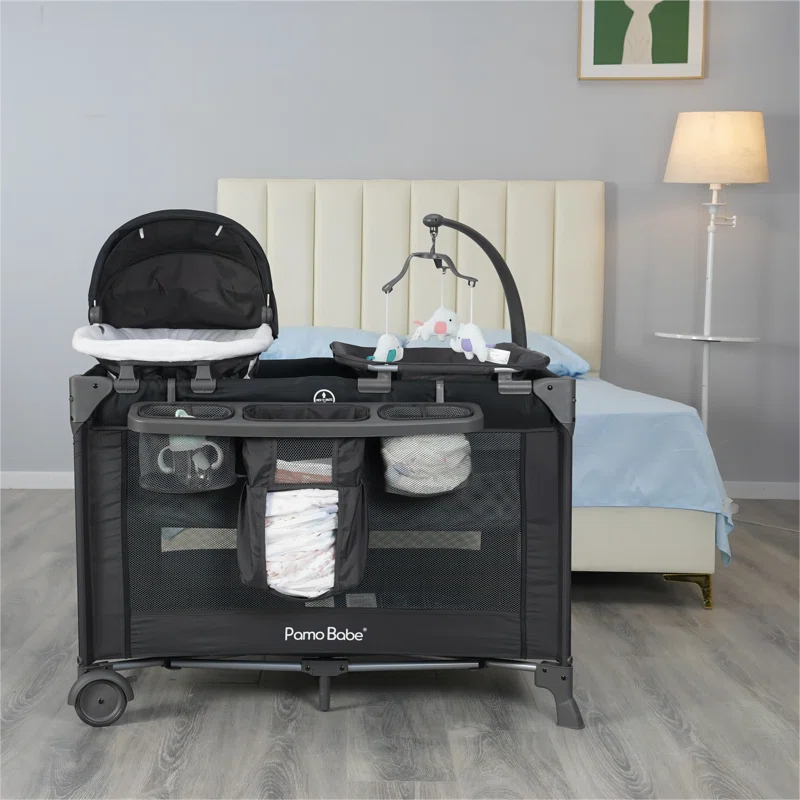 Convertible Portable Upholstered Crib with Mattress