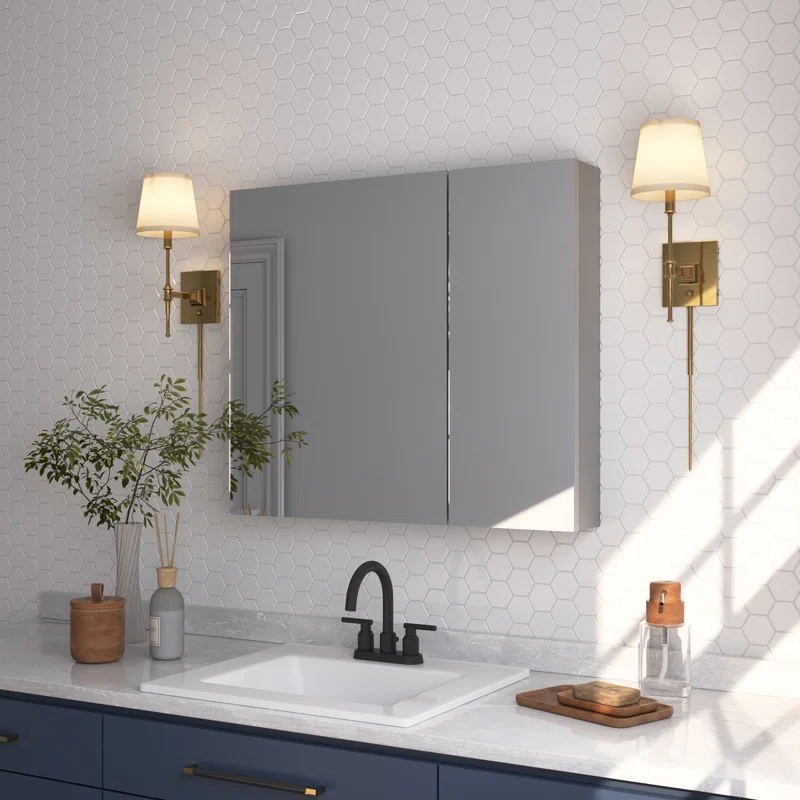 DV-1MC0148 30” W x 26” H Surface Frameless Medicine Cabinet with Mirror and 2 Adjustable Shelves