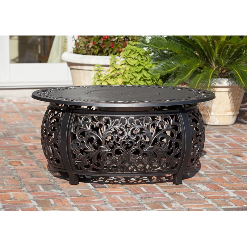 Slattery 24.6″ H x 48″ W Aluminum Propane Outdoor Fire Pit Table with Lid